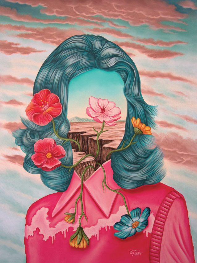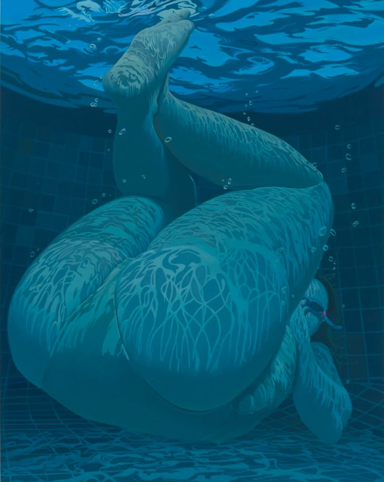 Stripping away their exteriors, Adrian Cox paints figures composed of pulpy, bulbous masses of flesh that repulse at a first glance. Though Cox acknowledges his characters’ monstrosity, he describes his true intention as an investigation of empathy. The openly-exposed flesh becomes a metaphor for emotional vulnerability. “…These characters strive to connect with each other and their environment,” he writes in his artist’s statement. “Their acts of singing, loving, whistling, stargazing and wandering suggest attempts to become united with their surroundings through a state of perpetual wonder.” Though visceral, Cox’s work contains a subtlety and humor that lies beyond the initial gross-out factor.
