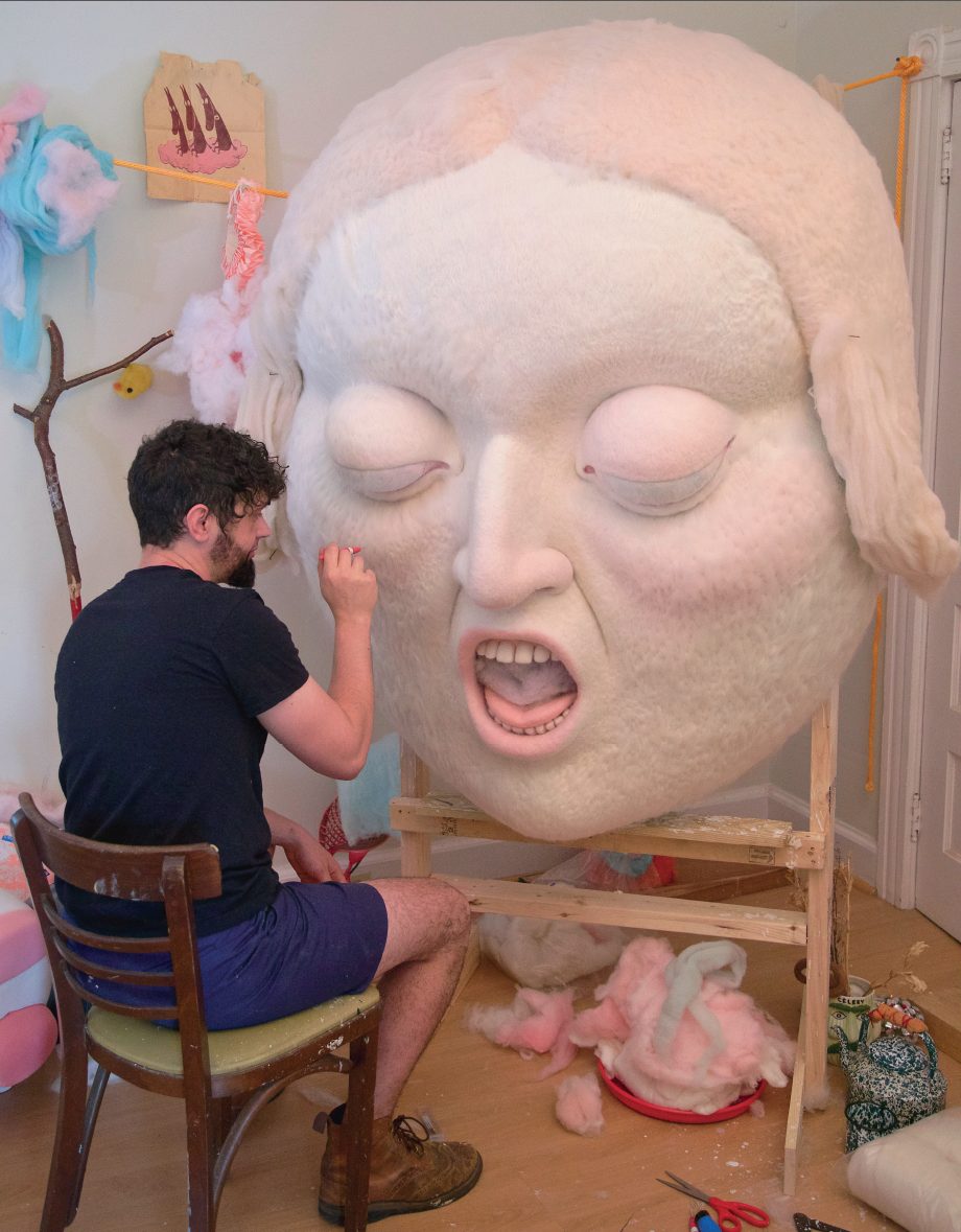 The face that Paolo del Toro has been sculpting for months isn’t particularly heavy. It’s mostly hollow and covered in wool felt. But, when that face fell on the artist recently, he recalls, it sure felt that way. “It certainly knocked me to the ground,” says del Toro by phone, “but it’s really easy to lift.”