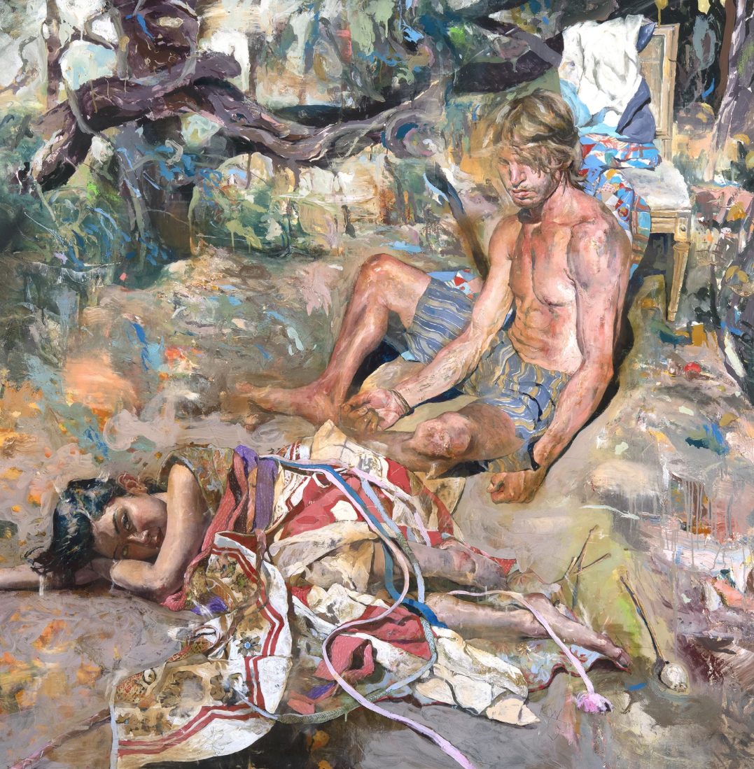 Whether the tiger is representative of the relationship between the two figures or a bout on introspection is impossible to ascertain.