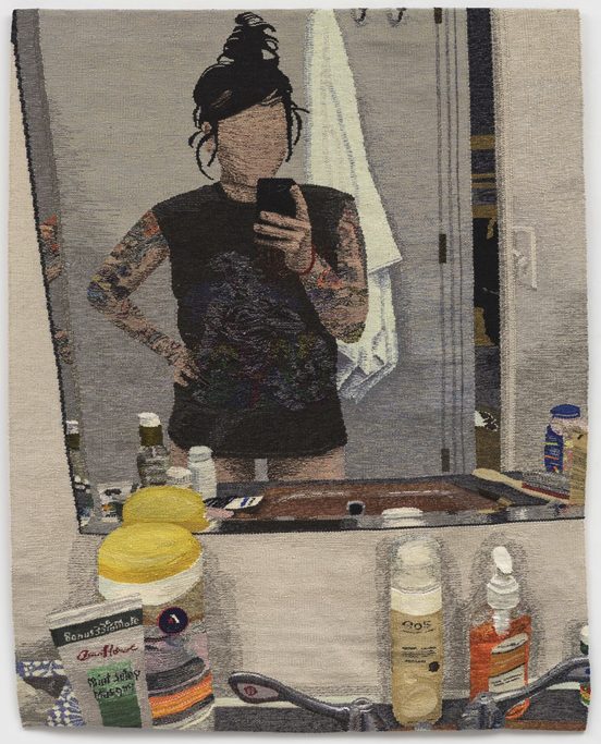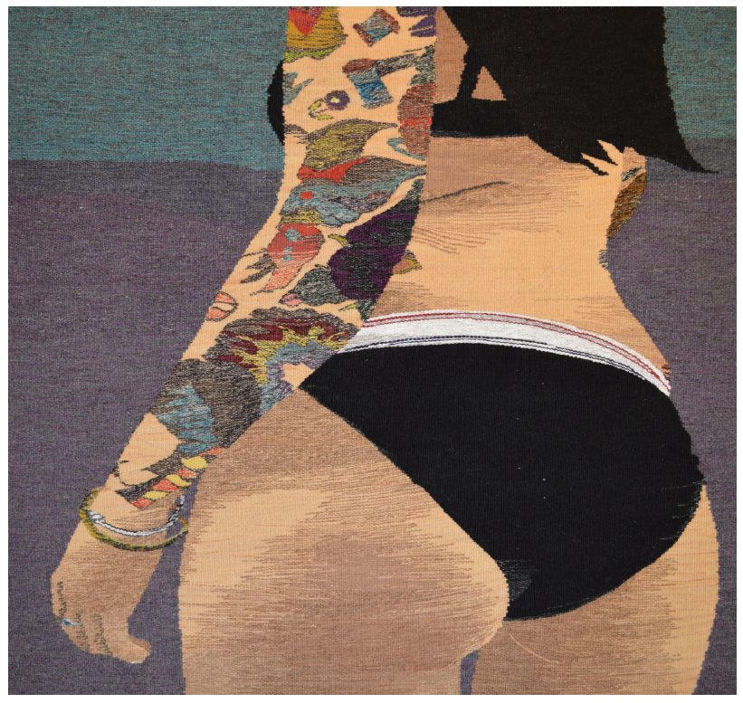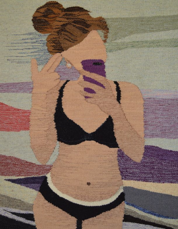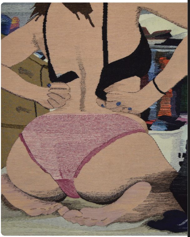 Erin M. Riley: Nudity or images revealing skin is most often simply described as erotic, but while the images I use might be intended to arouse a partner, the tapestries I weave are not just about eroticism. I am much more interested in the vulnerability that is depicted, the beauty that I find in those moments of exploration as well as the ideas of consent, body image, and how society responds to women revealing themselves. I think its an over simplified assessment.