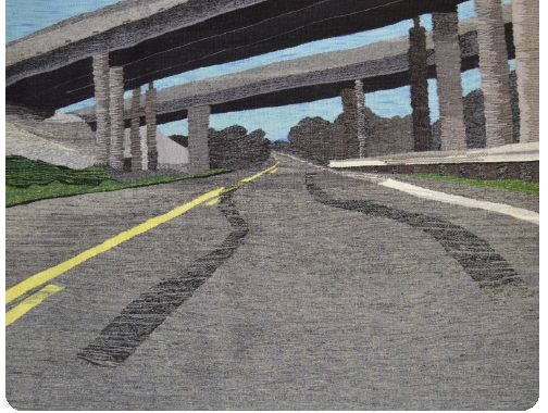 EMR: I just acquired a 100″ loom, which (compared to my 48″ and 24″ looms) is a monster. It is built to be operated by two people but I have been weaving on it like a mad woman doing aerobics. It is so fun to weave big! So I will be experimenting with that and working on a few shows. I am excited to delve into some more personal imagery that I think will be a good direction from the work I am currently making.